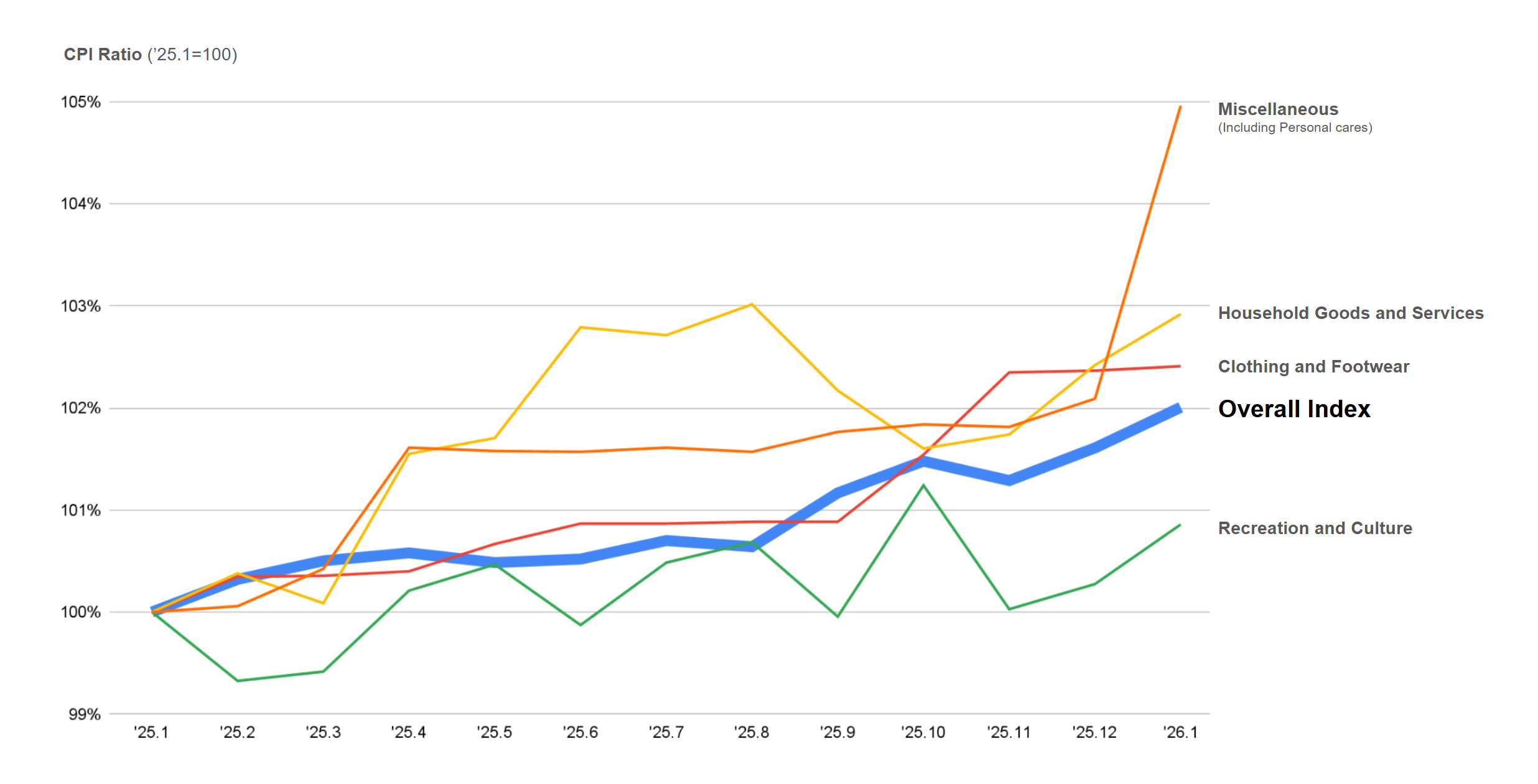 Overall inflation was relatively light in 2025, with the Consumer Price Index (CPI) rising by just 2.0%. However, for everyday consumer goods, it was a different story. Prices in specific categories easily outpaced the average: personal care products (including cosmetics) went up by 5.0%, home goods by 2.9%, and apparel and footwear by 2.4%.