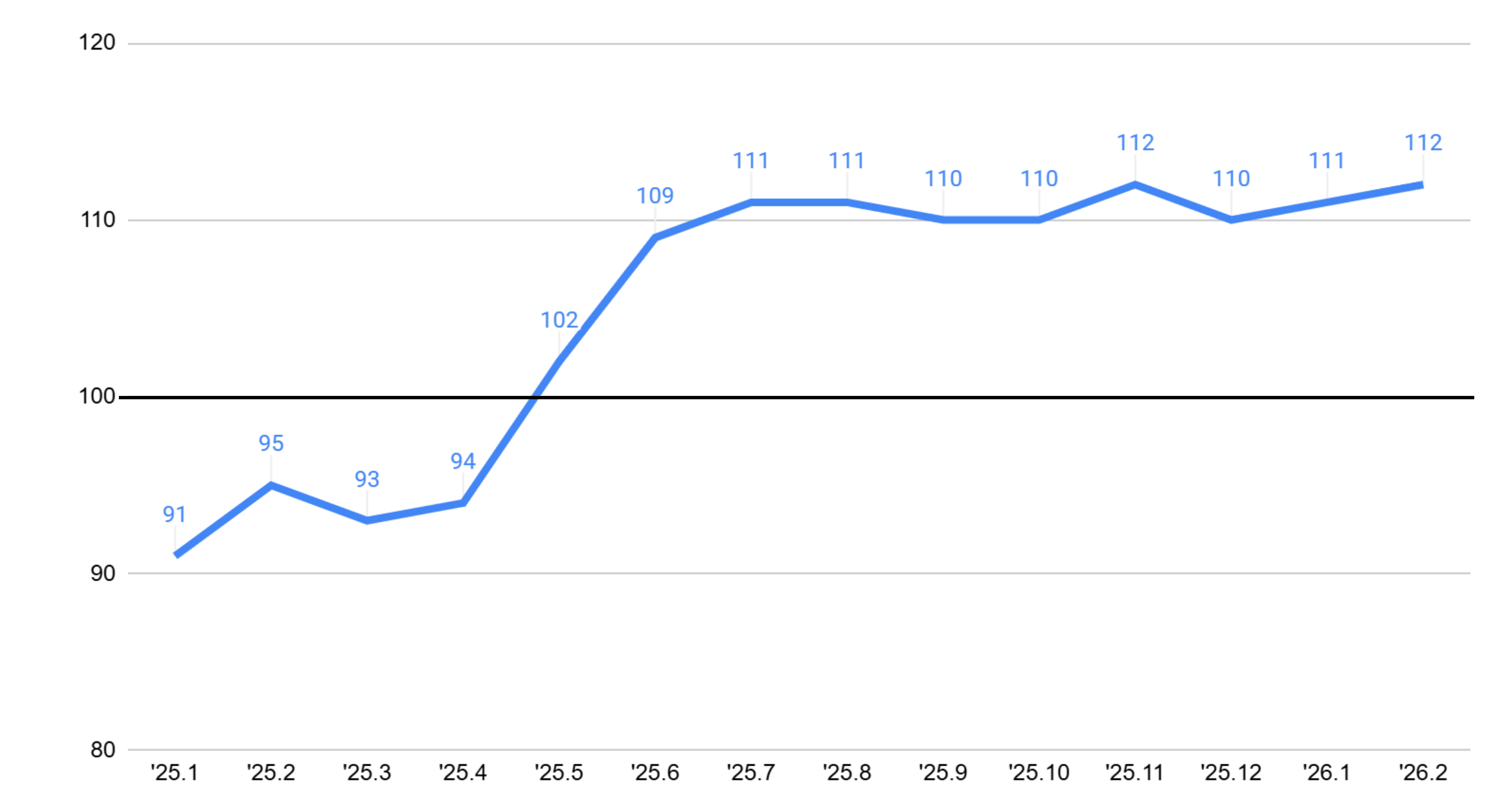 Even with tighter budgets, consumer sentiment remains surprisingly high. After crossing the 100 point threshold in May 2025, the index has hovered above 110 for eight consecutive months - hitting a five-year high in optimism.