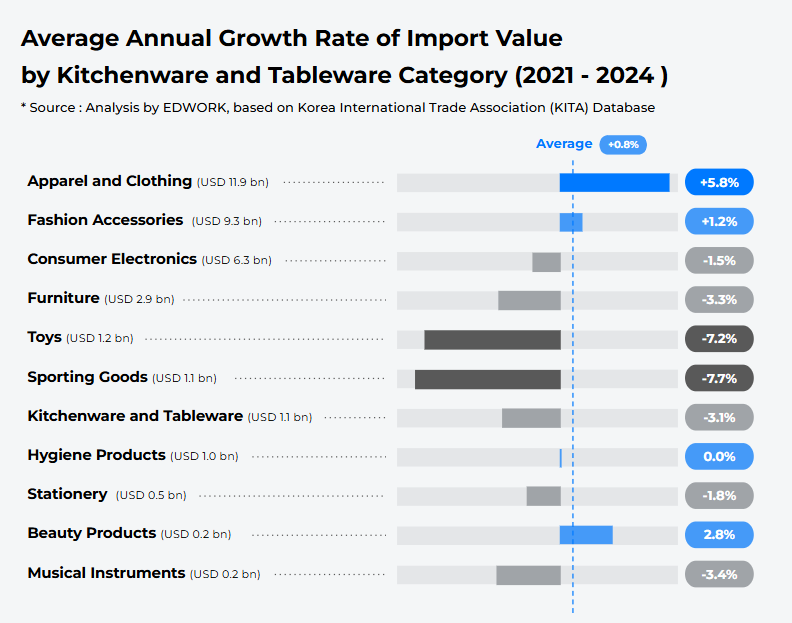 Deep Dive Korea reviewed 103 product categories across 11 consumer sectors— including fashion, footwear, bags, home appliances, furniture, toys, and kitchenware.