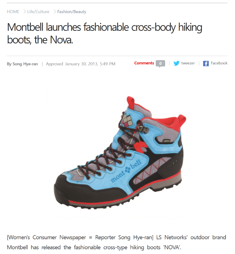 ⬇️ Nova, a Korea-exclusive hiking shoe emphasizing fashion over performance (Source: Montbell) |